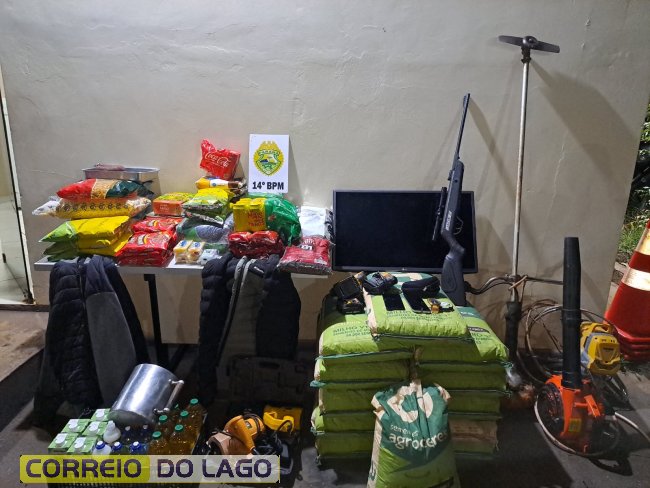 No local, os policiais encontraram um verdadeiro arsenal de objetos furtados. Entre os itens estavam cortador de grama, ferramentas, alimentos – reconhecidamente subtraído da escola de São Pedro –, além de utensílios de cozinha e até sementes de milho furtadas em fevereiro em Entre Rios do Oeste. Um transformador de energia, levado de Diamante D’Oeste, também foi recuperado.