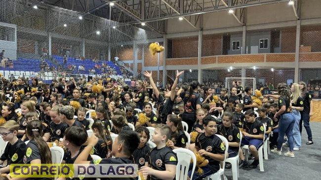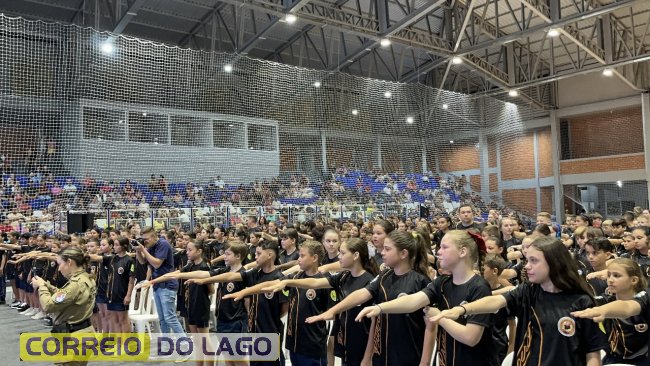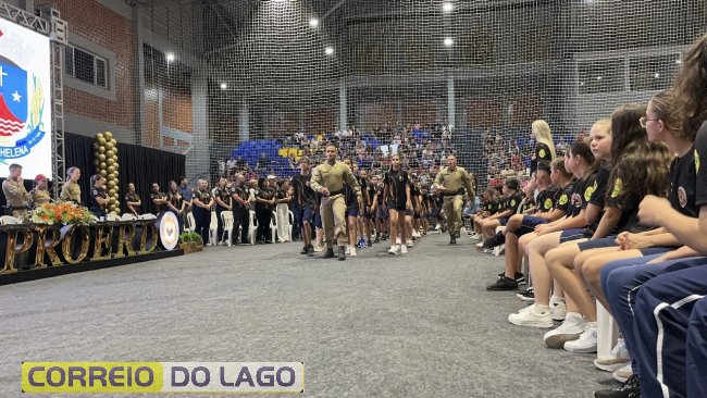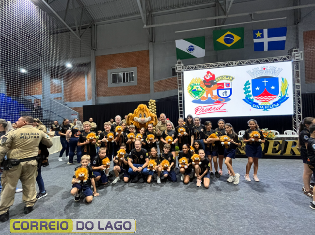 Santa Helena celebrou na noite desta quinta-feira (4) a formatura do PROERD 2025, reunindo 375 estudantes do quinto ano, no Ginásio de Esportes Máximo Vasatta. O evento, marcado por grande participação da comunidade escolar, contou com o apoio fundamental da Cooperativa Sicredi Vanguarda PR | SP | RJ, patrocinadora oficial da cerimônia e parceira ativa de iniciativas educativas no município.