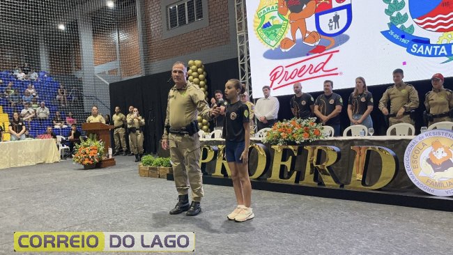 Durante a cerimônia, os 375 estudantes receberam certificados e apresentaram mensagens sobre o que aprenderam ao longo do ano. O PROERD trabalha temas como tomada de decisões seguras, controle das emoções, habilidades de resistência e prevenção ao uso de drogas e à violência.
