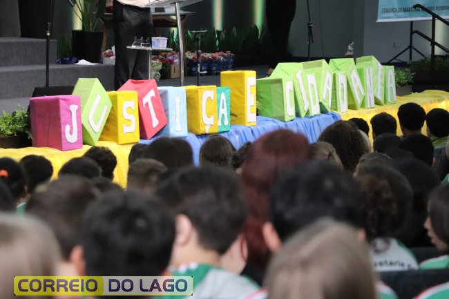 Na tarde desta terça-feira (30), o Auditório Ecos da Liberdade, em Marechal Cândido Rondon, sediou a formatura de mais uma turma do projeto “Justiça e Cidadania Também se Aprende na Escola”. A iniciativa aproxima estudantes do 5º ano do Ensino Fundamental das redes pública e privada das noções de justiça, cidadania e responsabilidade social.