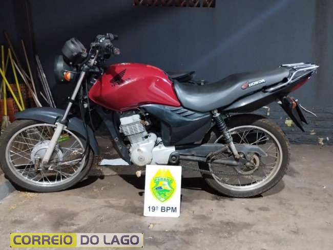 Uma motocicleta com registro de furto foi recuperada pela Polícia Militar na madrugada desta quarta-feira (17), durante patrulhamento no Bairro São Francisco. A ação ocorreu após a equipe visualizar um veículo em situação suspeita trafegando pela Rua Celestino Parizotto.