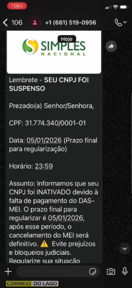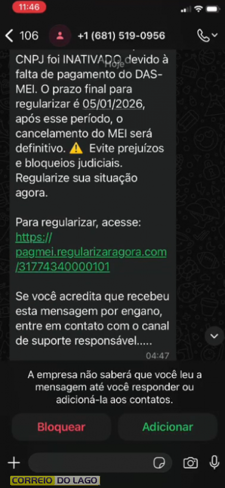 Outro ponto que chama a atenção é que os links enviados costumam funcionar apenas uma vez. Após o primeiro acesso, eles deixam de abrir, dificultando a conferência das informações ou qualquer tentativa de contestação. A orientação é que microempreendedores desconfiem de cobranças recebidas por mensagens e sempre consultem os canais oficiais antes de efetuar qualquer pagamento.
