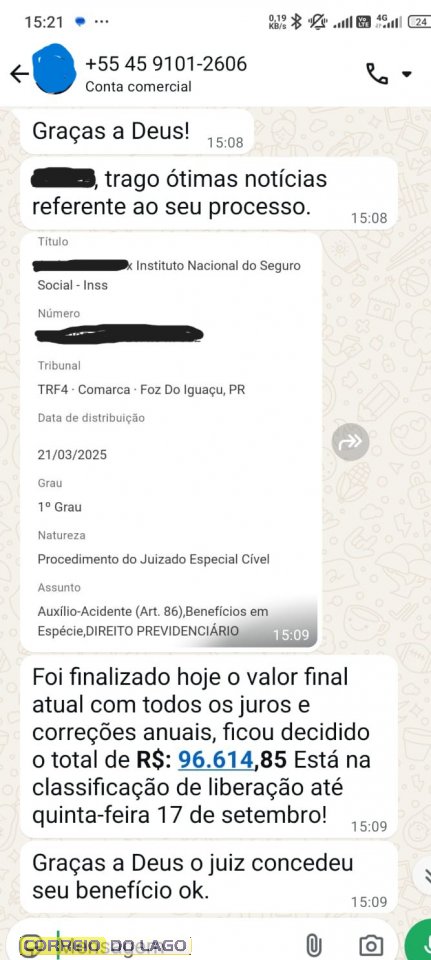 É importante reforçar: advogados não solicitam pagamentos extras nem confirmação de dados por aplicativos de mensagens. Qualquer cobrança ou comunicação oficial deve ocorrer pelos canais formais do escritório ou pelo próprio processo judicial.