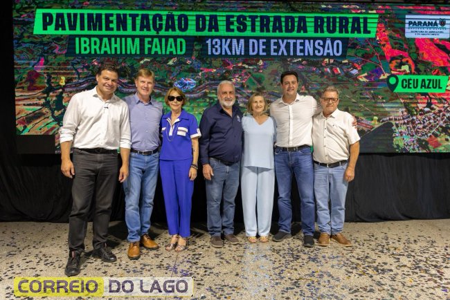 HOMENAGEM – Além das melhorias, a solenidade serviu para anunciar que a via passará a se chamar Estrada Rural Ibrahim Faiad. A denominação é uma homenagem ao ex-presidente da Coopavel e ex-secretário nacional de Política Agrícola, falecido em outubro de 2025. Faiad foi uma das figuras mais influentes na consolidação do agronegócio paranaense e um dos articuladores do desenvolvimento agroindustrial da região Oeste, tendo influenciado em políticas de desenvolvimento regional e de infraestrutura para o escoamento da safra.