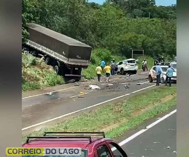 De acordo com informações preliminares da Polícia Rodoviária Federal (PRF), um caminhão que seguia no sentido crescente da rodovia teria perdido o controle da direção, invadido a pista contrária e colidido violentamente com três carros que trafegavam no sentido oposto.