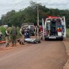 Grave acidente: policial militar sofre fratura exposta após colisão com caminhão em Santa Helena