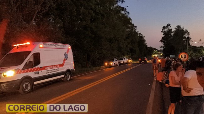Na sequência ele pegou uma bicicleta que estava próxima do local e se dirigiu até a PR-495 e, nas proximidades de um ferro velho, se jogou na frente de um veículo Peugeot, que ali transitava.