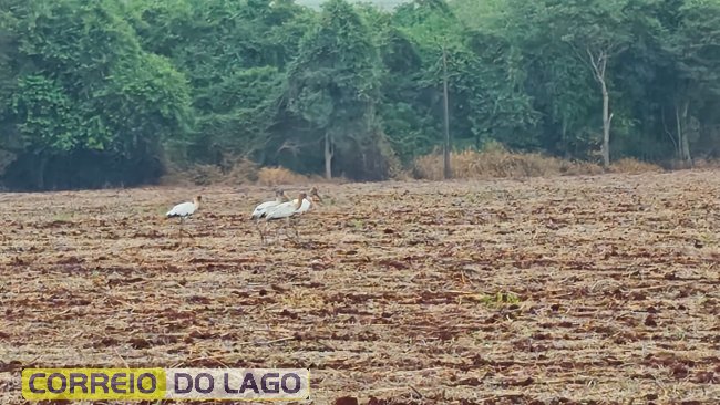 Um grupo de tuiuiús foi visto na tarde desta sexta-feira (13), em Santa Helena. O registro foi feito por um leitor do Jornal Correio do Lago, nas imediações do Parque Industrial Cirilo Caumo.