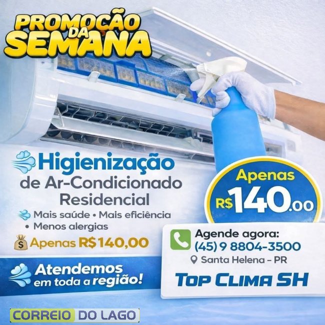 A Top Clima SH está com promoção na higienização de ar-condicionado residencial pelo valor de R$ 140, considerada uma das melhores condições do mercado local. O serviço contribui para melhorar a qualidade do ar, reduzir alergias e aumentar a eficiência do equipamento.