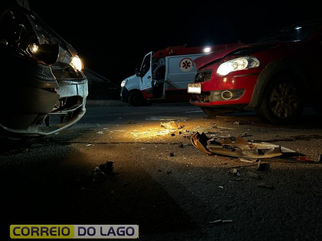 Os dois veículos tiveram danos na parte frontal. A Polícia Militar esteve no local para registrar a ocorrência.