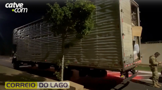 Durante fiscalização de rotina, os agentes abordaram um caminhão furgão. O comportamento do condutor, de 36 anos, chamou a atenção após apresentar informações inconsistentes sobre o trajeto.
