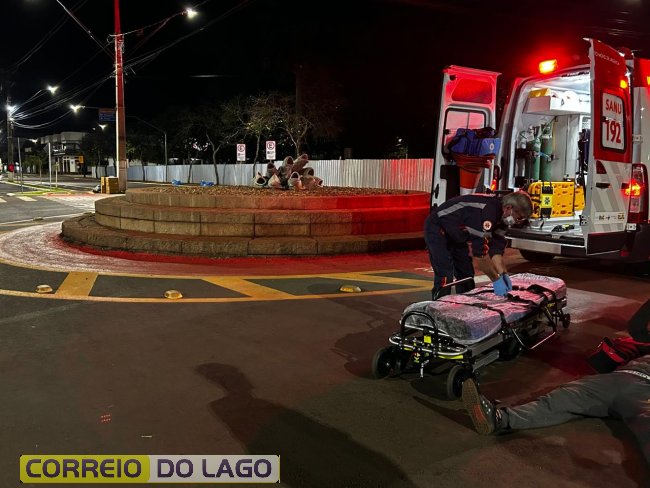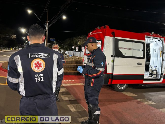Na noite desta quarta-feira (10), uma equipe do SAMU foi acionada para socorrer um homem na Avenida Brasil, no cruzamento com a Avenida Deputado Arnaldo Busato, no Centro de Santa Helena.
