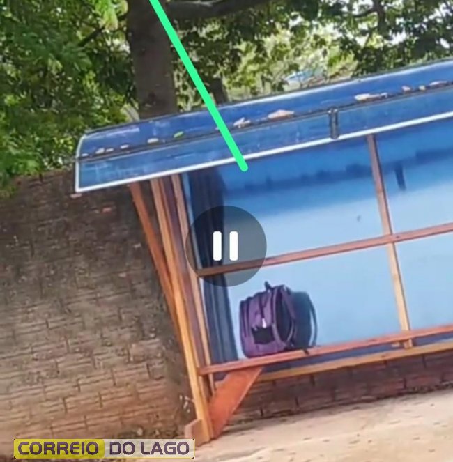 Um trabalhador esqueceu uma mochila em um ponto de ônibus no bairro Jardim União, em Santa Helena, na tarde desta terça-feira (28), após se abrigar da chuva enquanto retornava do trabalho de bicicleta.