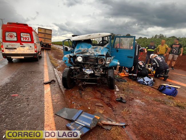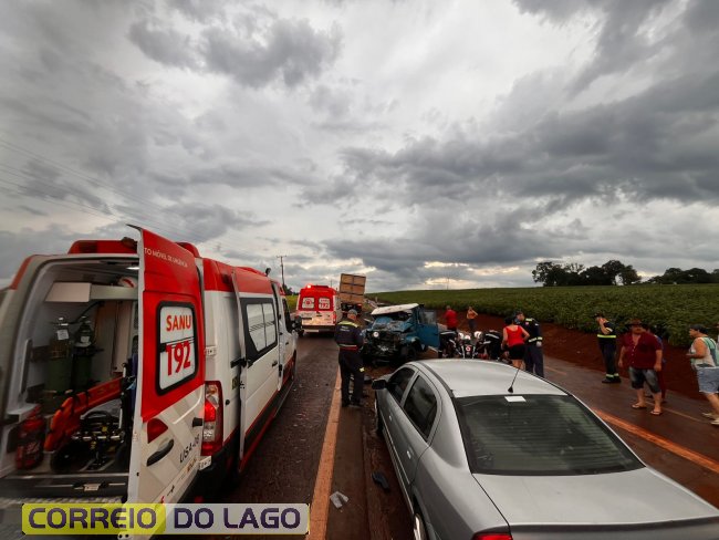 O motorista da caminhonete sofreu fratura exposta na perna direita e traumatismo craniano encefálico (TCE). Equipes de emergência foram acionadas rapidamente: duas ambulâncias, um caminhão do Corpo de Bombeiros e a Patrulha Rural da Polícia Militar estiveram no local para prestar atendimento. A colisão frontal ocorreu durante uma forte chuva, que possivelmente tenha feito o condutor da caminhonete perder o controle do veículo.
