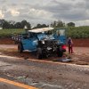Homem fica gravemente ferido em acidente com caminhão carregado de suínos na PR-495 em Santa Helena