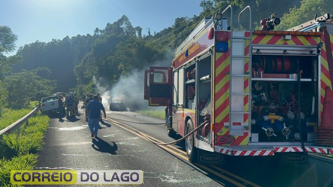 O motorista conseguiu sair cortando o cinto de segurança com um canivete. O condutor do automóvel que também pegou fogo e a condutora da camionete sofreram ferimentos leves.