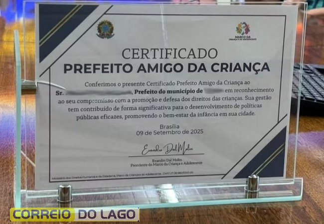 Em nome do "Marco da Criança e do Adolescente", o homem reconheceu diversos prefeitos como "Prefeito Amigo da Criança", destacando gestões que supostamente contribuíram para o desenvolvimento de políticas públicas voltadas para a infância.