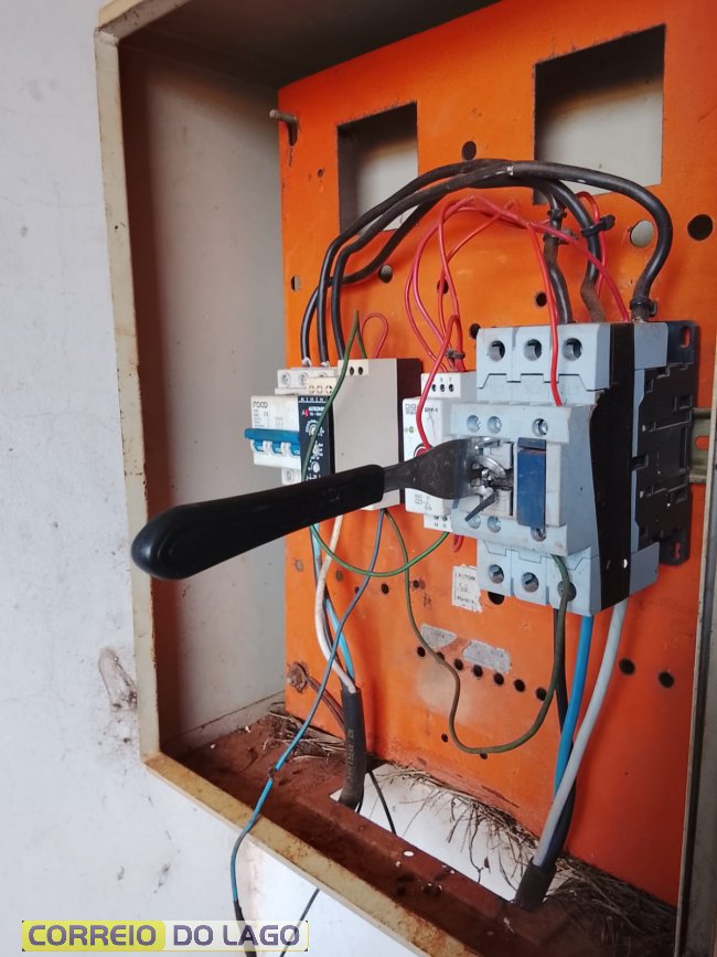 Neste domingo (25), foi registrada uma situação de risco na Linha São Luiz, no interior de Santa Helena. Uma chave contactora da bomba de captação de água foi encontrada calçada de forma irregular com um garfo.