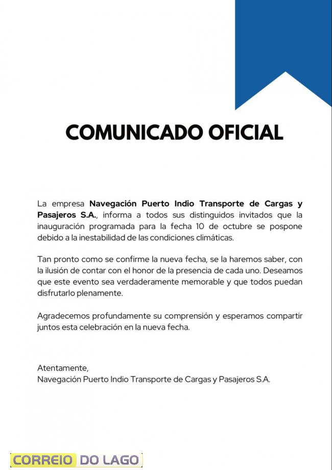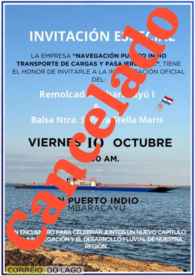 Esta é uma das razões do cancelamento do evento inaugural da balsa construída no Paraguai e que vai ampliar a oferta de transporte internacional ao Porto de Santa Helena, Costa Oeste do Paraná, no Brasil, de acordo com a Navegação Porto Índio Transporte de Cargas e Passageiros S.A.