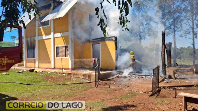 Incêndio em chalé na Linha Jacaré, em Diamante d’Oeste, teria começado por falha nas instalações elétricas