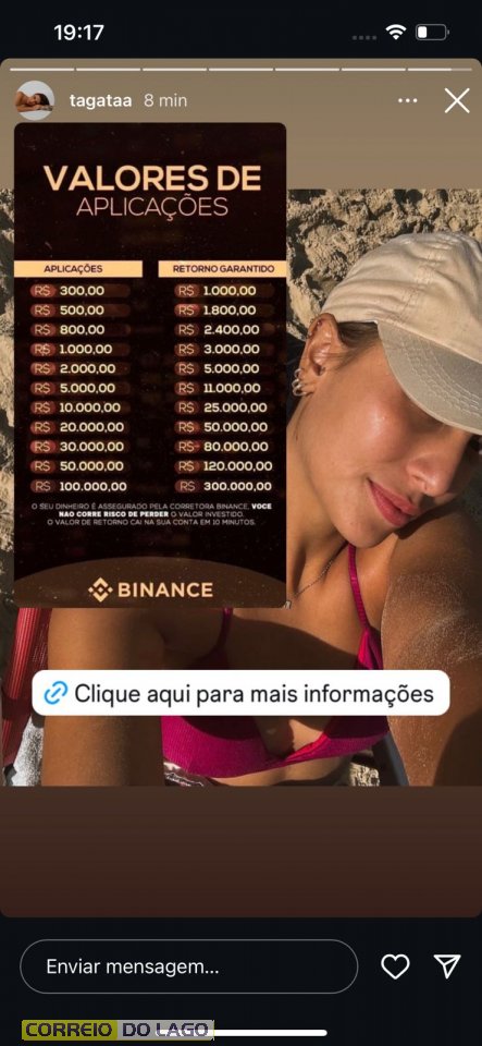 As postagens parecem indicação do trabalho de uma amiga, mas não são. É uma tentativa de roubar dados pessoais ou convencer as pessoas a enviarem dinheiro para um suposto investimento vantajoso.