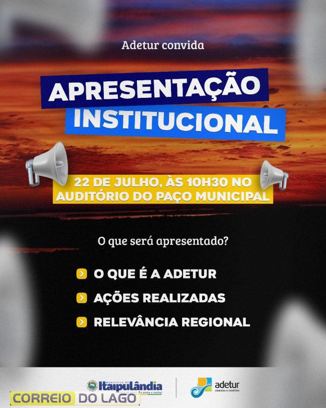 Na próxima terça-feira (22), às 10h30, a Adetur Cataratas e Caminhos, em parceria com o município de Itaipulândia, realizará uma apresentação institucional com o intuito de compartilhar as ações e iniciativas em desenvolvimento na região. O principal objetivo é mobilizar associados e fortalecer o setor turístico local.