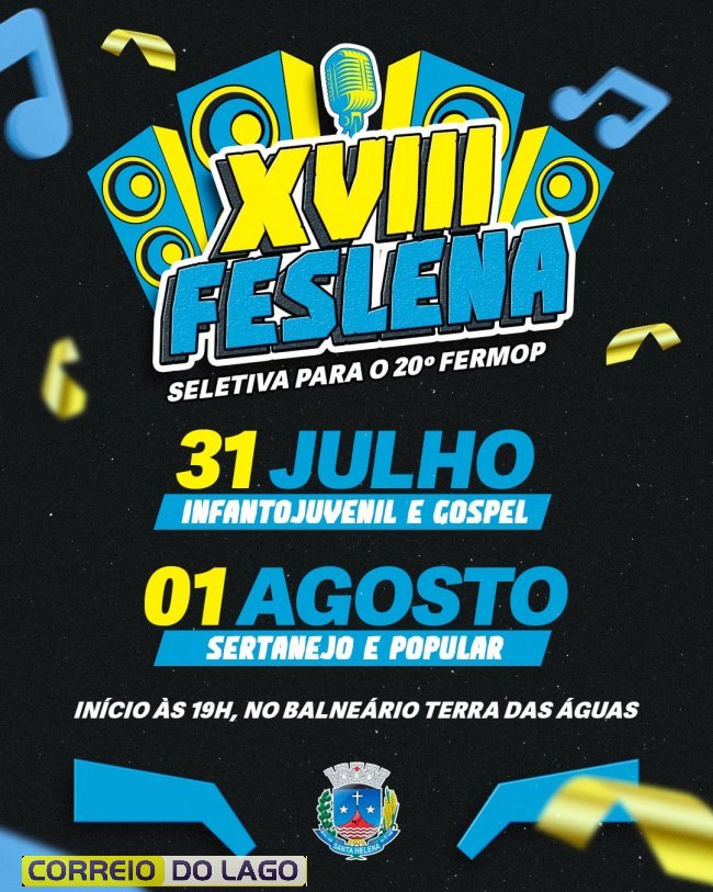 O cenário cultural também ganhou destaque com o início do XVIII FESLENA, festival de música que teve sua abertura no Centro de Eventos Silão Schmidt, no Balneário Terra das Águas, com entrada franca a partir das 19h, prometendo movimentar a programação cultural em Santa Helena e atrair visitantes de municípios vizinhos.