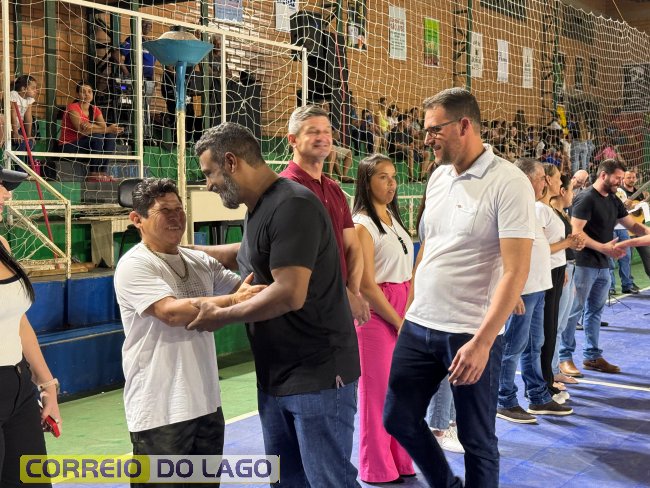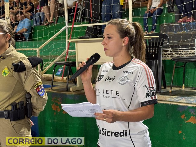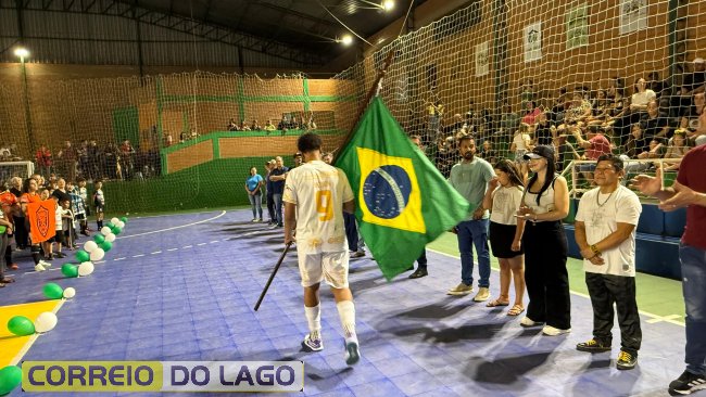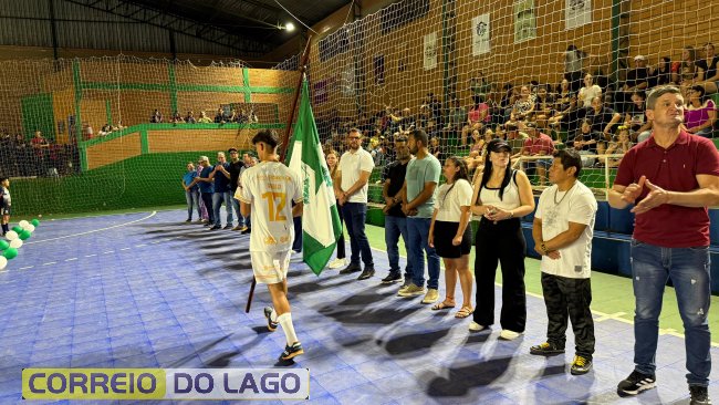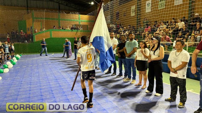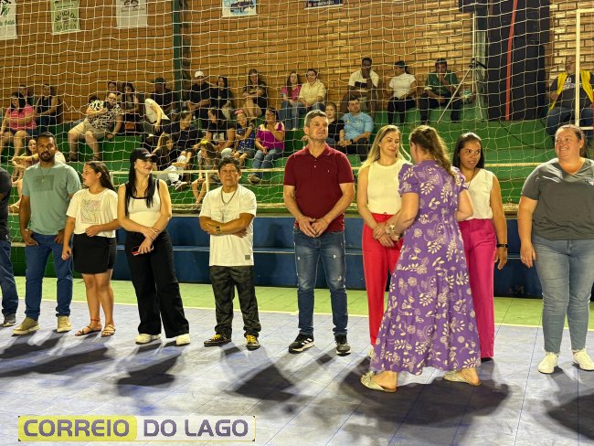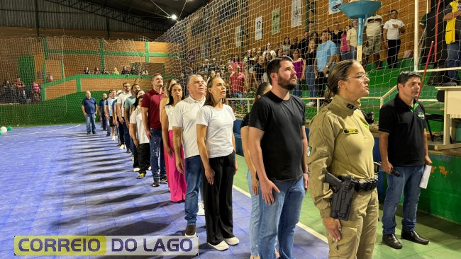 A solenidade aconteceu no Ginásio de Esportes Coração Amigo e reuniu autoridades locais, atletas do município e da região, representantes da Polícia Militar e um grande público.