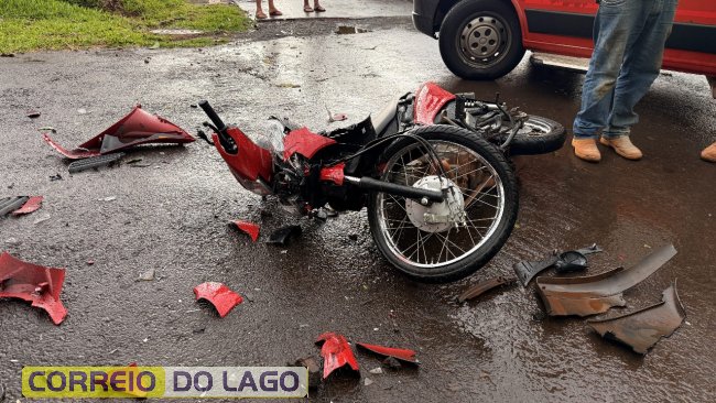 Um acidente entre um carro Gol e uma motocicleta Honda Biz foi registrado por volta das 15h desta quinta-feira (16), no Bairro Renascer, em Missal.
