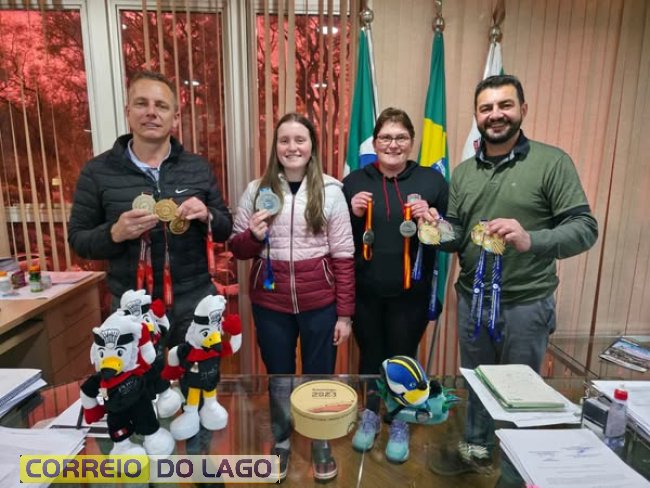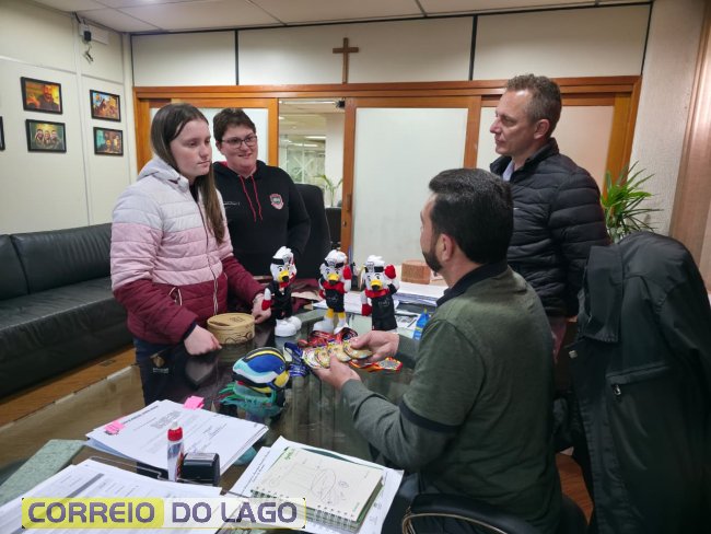 A principal representante do parabadminton de Marechal Cândido Rondon, Kauana Michelson Beckenkamp, esteve no paço municipal na tarde desta segunda-feira (25), onde foi recebida pelo prefeito Adriano Backes e pelo vice-prefeito Vanderlei Sauer, acompanhada de sua mãe, Tatiane Cristina Michelson Beckenkamp. Na ocasião, o prefeito parabenizou Kauana pelas conquistas e destacou o orgulho que ela traz ao município. “Você é uma grande inspiração para outros jovens atletas rondonenses”, ressaltou Backes.