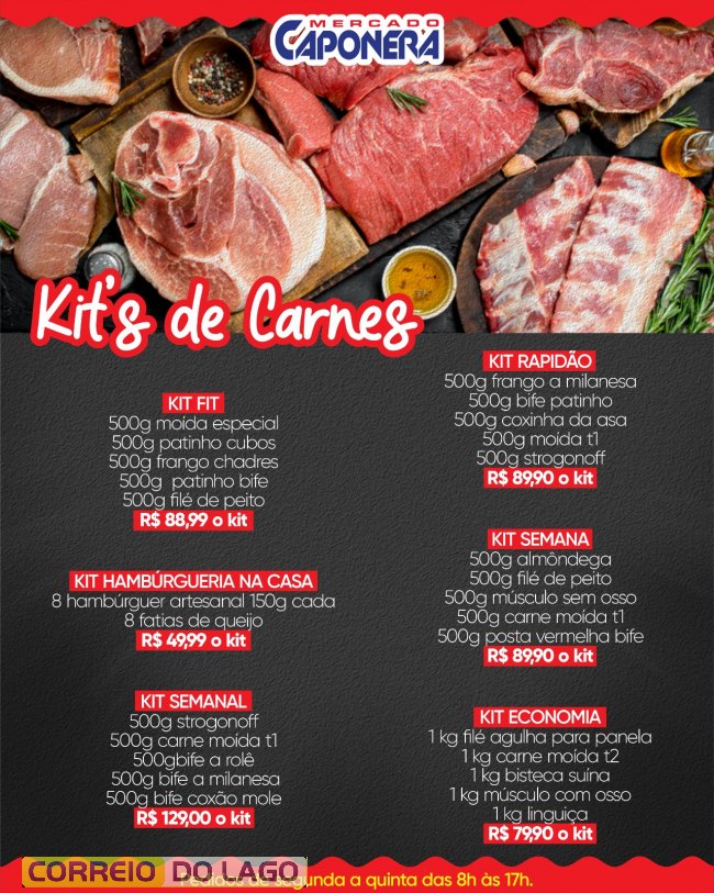 Para garantir o seu kit e facilitar o planejamento das refeições, basta entrar em contato com o Caponera e fazer o pedido nos dias e horários indicados. Aproveite a oportunidade de levar praticidade, variedade e economia para sua cozinha!