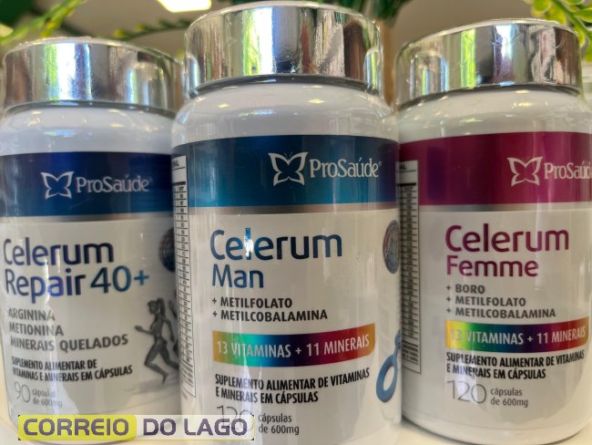 A linha conta com versões específicas, como o Celerum Man e o Celerum Femme, além do Celerum Repair 40+, formulado para atender quem já passou dos 40 anos. Nesta versão, além do suporte à vitalidade, o suplemento também auxilia na regulação hormonal.