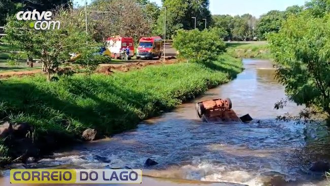 Na sequência, o veículo capotou e caiu dentro do rio, ficando com as rodas para cima. As causas do acidente ainda serão investigadas.