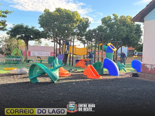 Mais alegria no recreio: escola ganha playground e transforma rotina dos alunos em Entre Rios do Oeste
