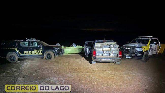 Uma grande apreensão de drogas foi registrada na madrugada desta sexta-feira (13), por volta das 2h, às margens do Lago de Itaipu, na localidade conhecida como Santa Helena Velha, em Santa Helena. A ação integrada envolveu a Polícia Federal, por meio do NEPOM de Foz do Iguaçu e a Polícia Militar por meio do BPFron.