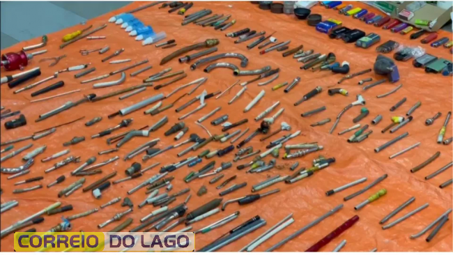 Nas imagens é possível ver a quantidade de material recolhido, sendo armas brancas, cachimbos para uso de drogas, além de outros. Muitos dos itens foram apreendidos com moradores de rua.