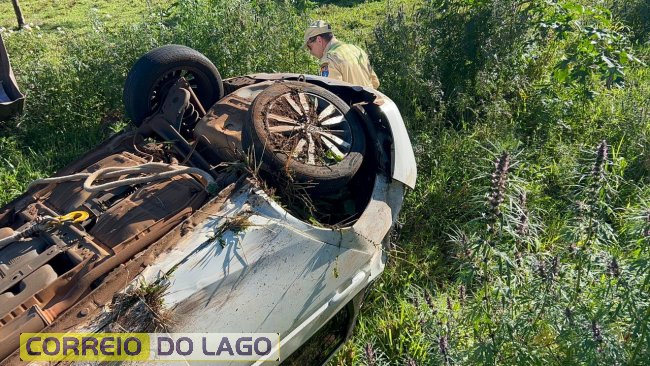 Mais um acidente foi registrado no perigoso trecho do KM 46 da rodovia PR-488, entre Santa Helena e Diamante do Oeste. Um Honda Fit seguia no sentido Santa Helena a Diamante do Oeste quando, ao chegar à curva do referido ponto, o condutor perdeu o controle do veículo e acabou saindo da pista, parando em uma propriedade rural às margens da rodovia.