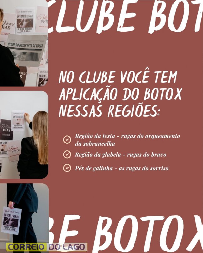 Os participantes recebem três aplicações programadas (testa, glabela e pés de galinha), além de brindes exclusivos, sorteios de preenchimento facial e descontos em outros procedimentos durante todo o ano. O pagamento é facilitado, sem juros e sem comprometer o limite do cartão, tornando o cuidado com a beleza ainda mais prático e acessível.
