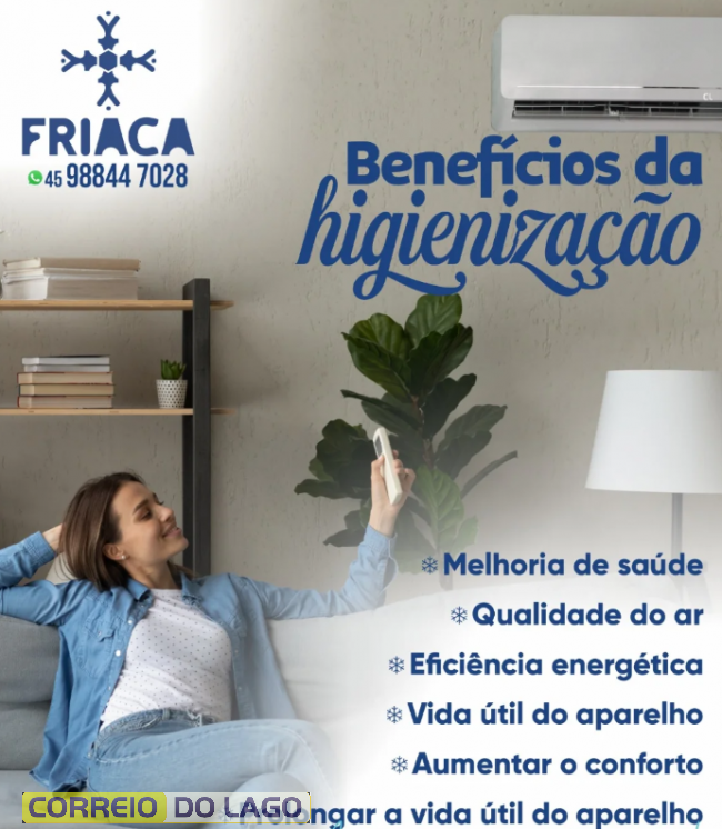 Para cuidar da saúde e economizar energia, contrate a Friaca, empresa de Santa Helena especializada em higienização de ar condicionado. Peça seu orçamento pelo WhatsApp: 45 98844-7028 e tenha tranquilidade o ano todo.