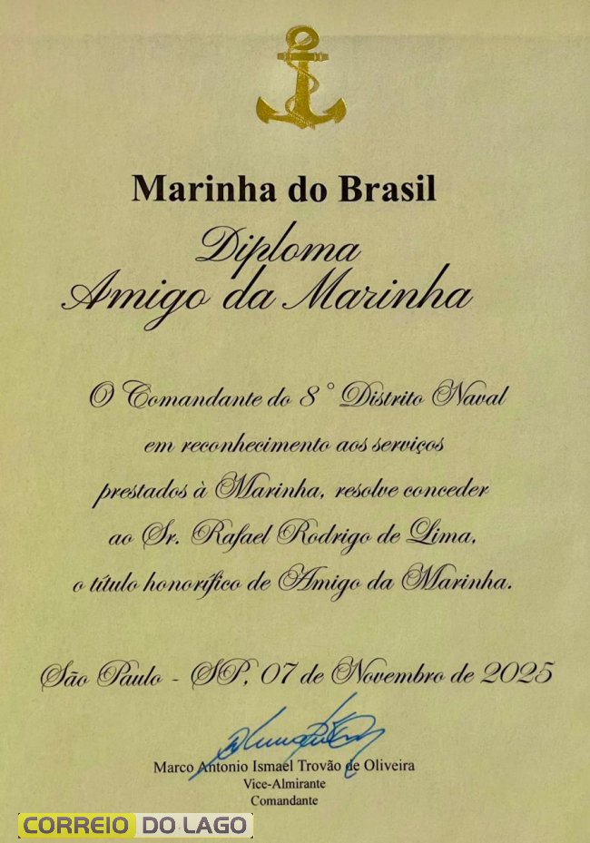 A homenagem reconhece o compromisso de Rafael em fortalecer a presença e a missão institucional da Marinha na sociedade, apoiando ações fundamentais para a defesa da soberania, da segurança da navegação e da preservação das vias navegáveis. Sua trajetória e seu vínculo com as ações da Marinha têm contribuído diretamente para a valorização da Tríplice Fronteira e para o fortalecimento das iniciativas que aproximam instituições, comunidade e Forças Armadas.