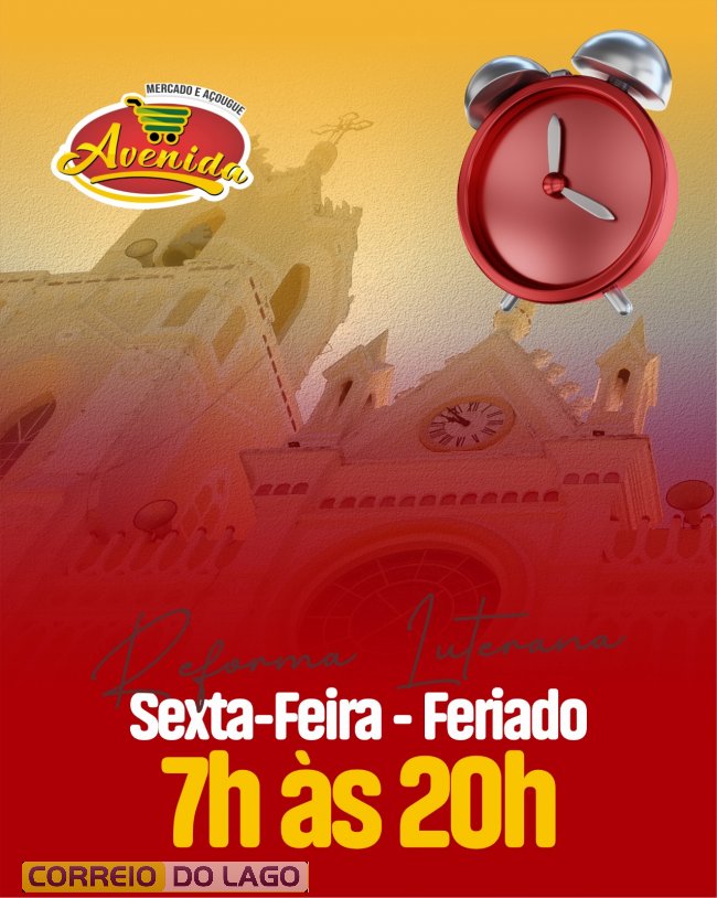 O Mercado e Açougue Avenida, localizado em Sub-Sede, Santa Helena, informou seus horários de funcionamento durante o feriado prolongado. Nesta sexta-feira (31), feriado da Reforma, o atendimento será normalizado das 7h às 20h, oferecendo aos clientes tempo ampliado para as compras do fim de semana e pedido para carne assada para o domingo (02).