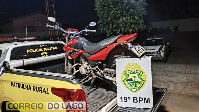Na madrugada desta terça-feira (15), por volta da 1h15, uma motocicleta furtada foi localizada pela Polícia Militar em um terreno baldio situado na Rua Argentina, em frente a um posto de combustíveis, em Santa Helena.