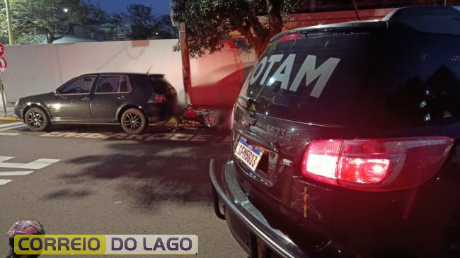 Ao perceber a aproximação dos policiais, o indivíduo tentou encerrar a manobra arriscada e iniciar uma fuga. No entanto, ao abaixar a moto, perdeu o controle da direção. A roda dianteira derrapou, fazendo com que ele se arrastasse pelo asfalto por alguns metros antes de atingir a traseira de um Volkswagen Golf estacionado no acostamento.