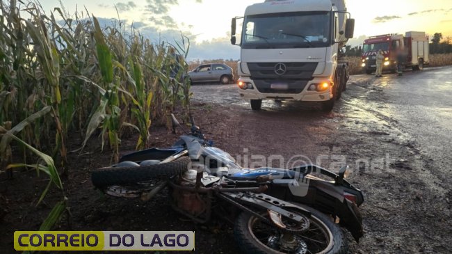 Motociclista fica gravemente ferido após acidente envolvendo caminhão no interior de Marechal Rondon