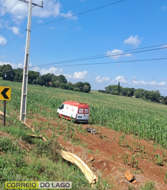 Um acidente foi registrado na entrada de Missal, próximo ao bairro Renascer. Segundo o relato, o condutor seguia no sentido da área industrial em direção ao centro do município, quando passou reto na curva e saiu da pista.