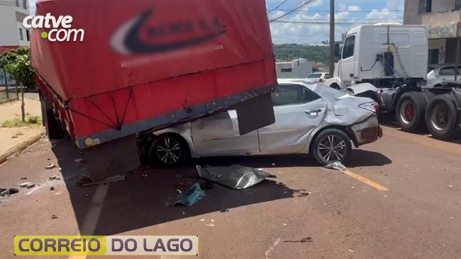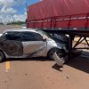 Um homem de 26 anos ficou ferido após bater o carro que conduzia contra uma carreta na Avenida Expresso Norte, no bairro Florais do Paraná, em Cascavel, no fim da manhã de domingo (25).