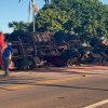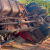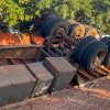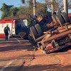 Motorista perde controle e tomba carreta na PR-317, em Santa Helena