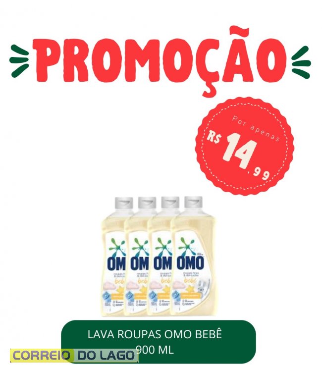 Lava Roupas OMO Bebê 900ml, R$ 14,99;