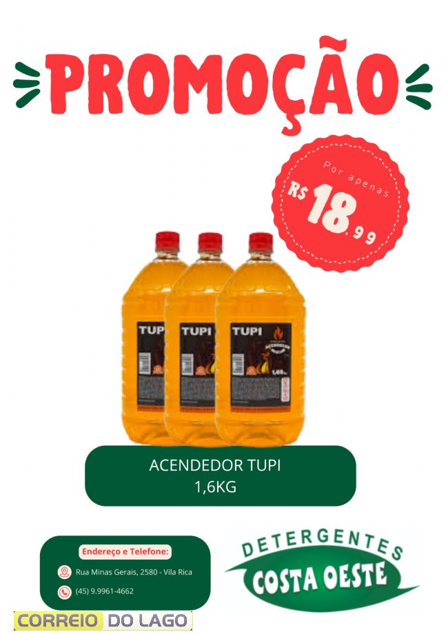 Acendedor Tupi 1,6kg, R$ 18,99.