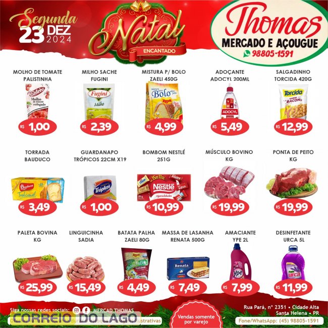 Confira as ofertas do Thomas Mercado e Açougue! Somente hoje (23), você encontra preços imperdíveis: